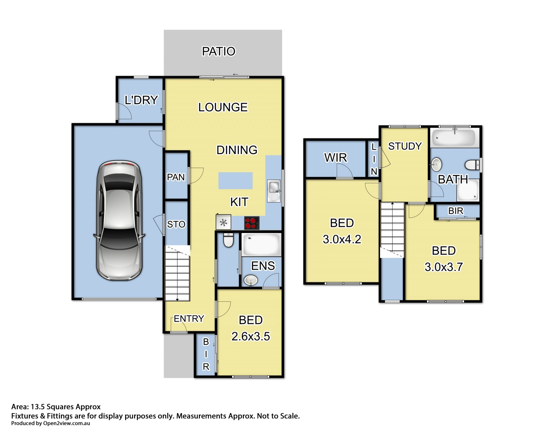 This modern home spills across two levels and offers a large open plan living/meals area for the whole family to enjoy, well-appointed kitchen with gas cooktop, electric oven and dishwasher, three good size bedrooms each with split system heating/cooling and two full bathrooms.