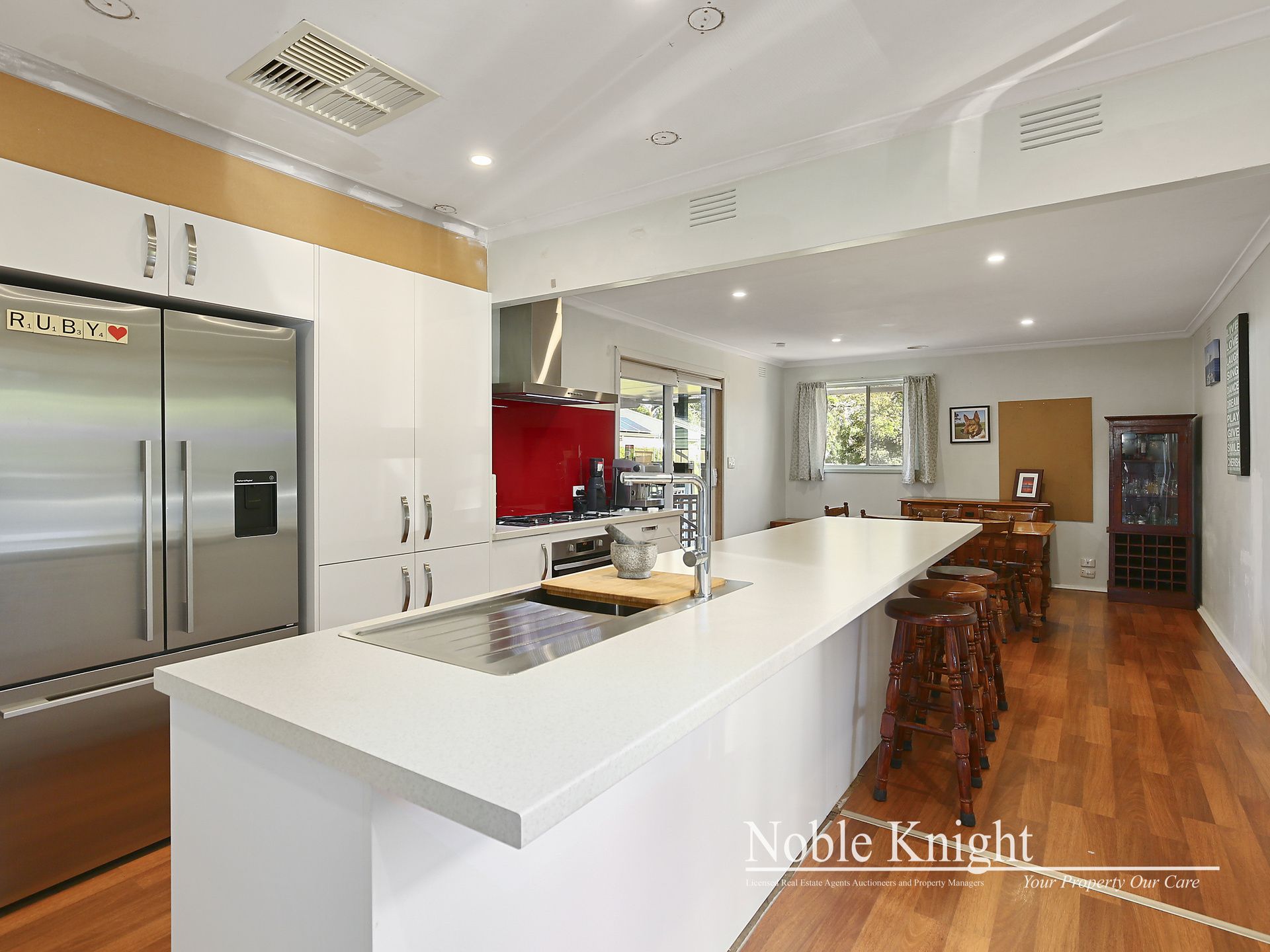 Fantastic location in Mooroolbark awaits this 3 bedroom home, new kitchen with stainless steel appliances, gas ducted heating and evaporative cooling throughout. As well as a 4.5kw solar system back to the grid. Amazing large outdoor under cover deck to entertain. Double carport with access to flat level backyard with 2 garages. Backing onto nature reserve and across the road from Balcombe Avenue Reserve. Possible subdivision potential (STCA).