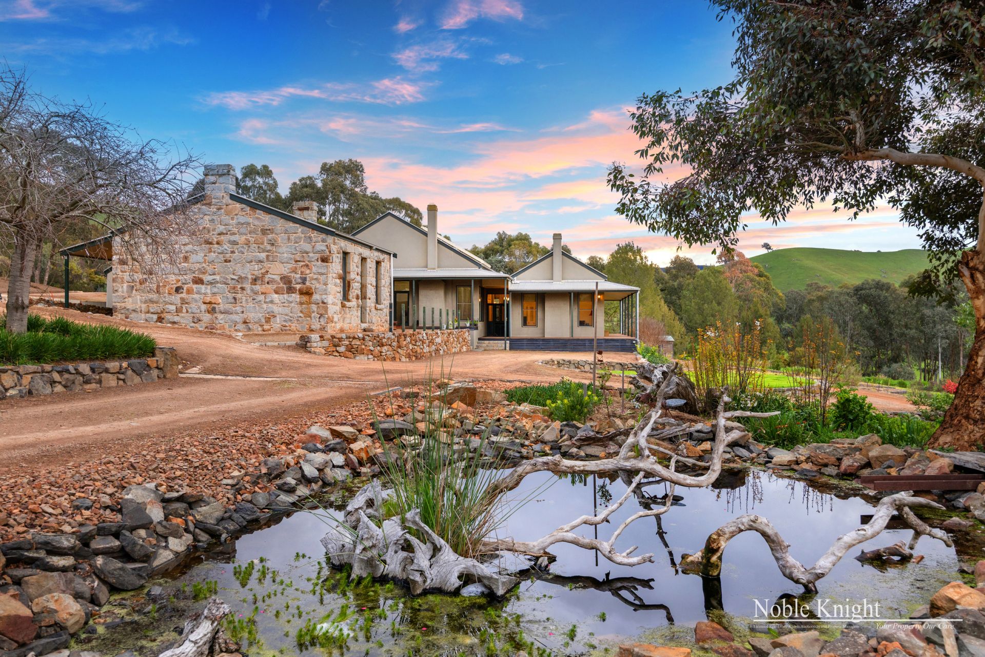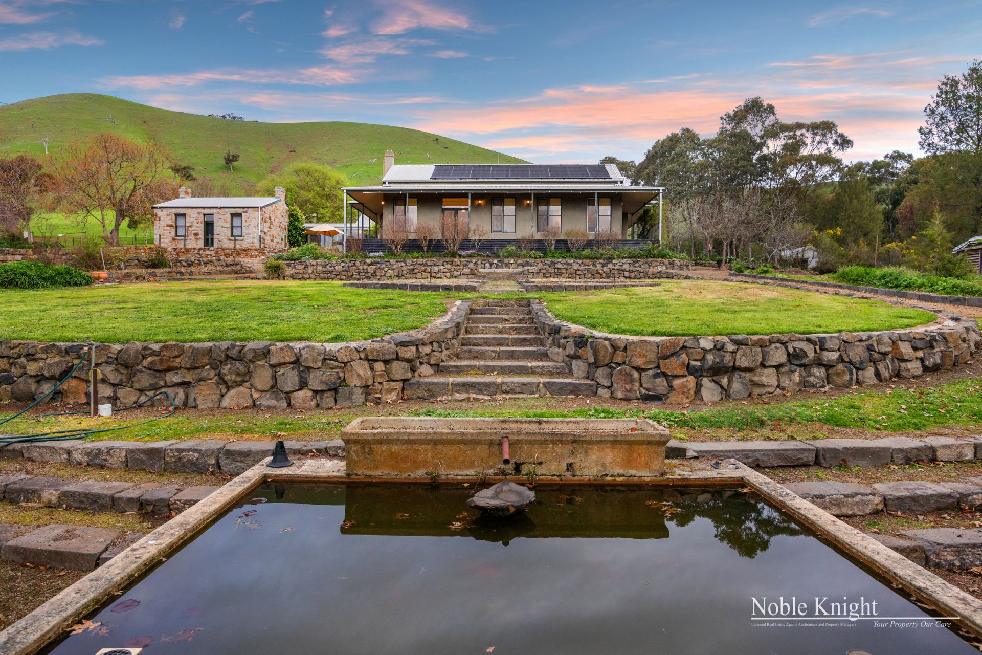 Relocated from Mernda, Victoria and faithfully reconstructed in 2000 this 1860 residence is linked to the main house by a glassed walkway and provides flexible accommodation for up to three extra bedrooms making it ideal for extended family, guests or staff.