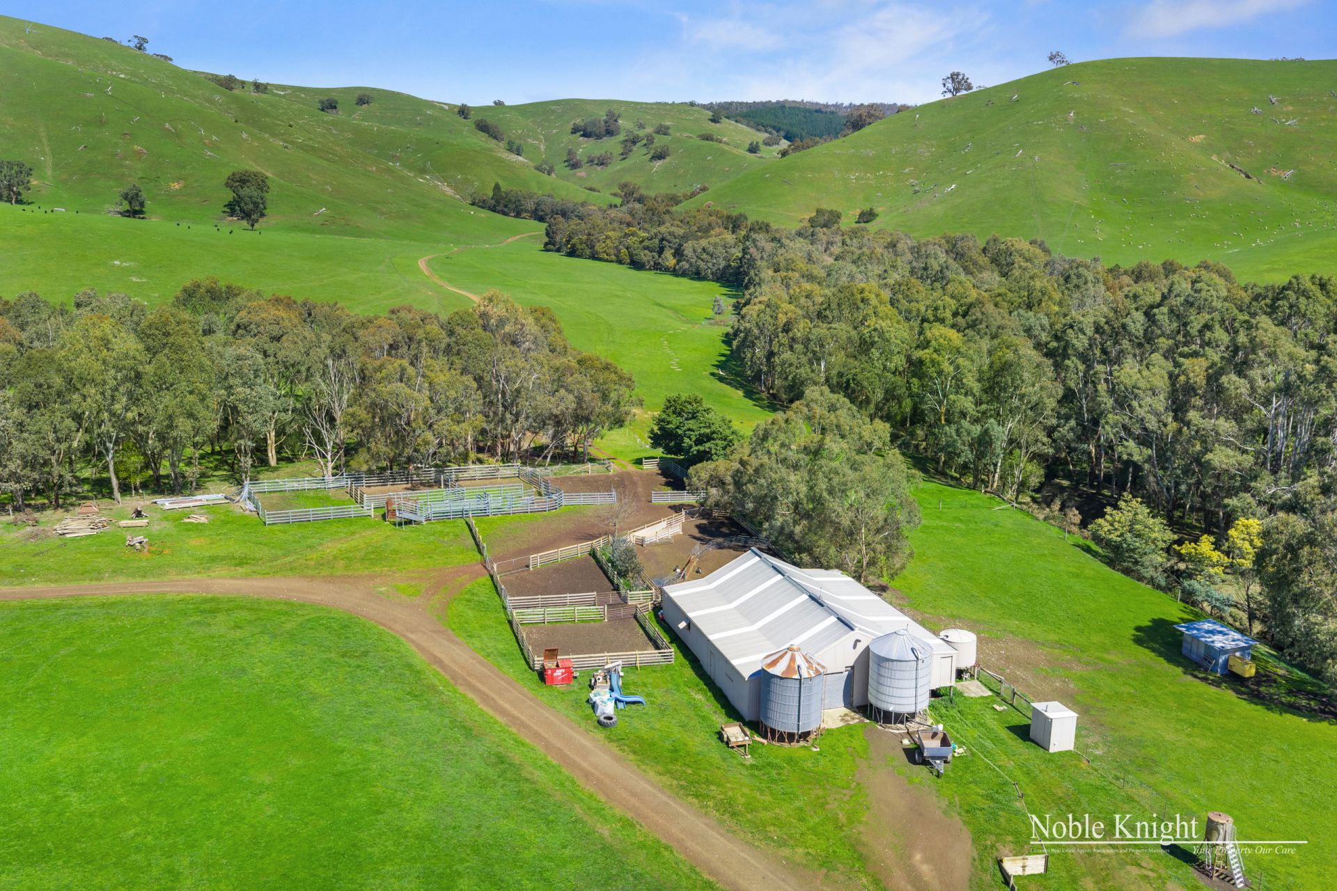 One of the district's most significant rural holdings, this extraordinary property spans approximately 852.09 hectares (2,105.5 acres) across 14 titles. Immaculately maintained and thoughtfully designed, the land is divided into 22 well-fenced paddocks with established access tracks ensuring ease of movement throughout the farm. Rolling valley landscapes are beautifully framed by mature trees, creating both natural shelter and warmth for livestock while adding to the property's scenic charm. Rare in scale, quality and presentation, this is a unique opportunity to secure a landmark holding in the region.