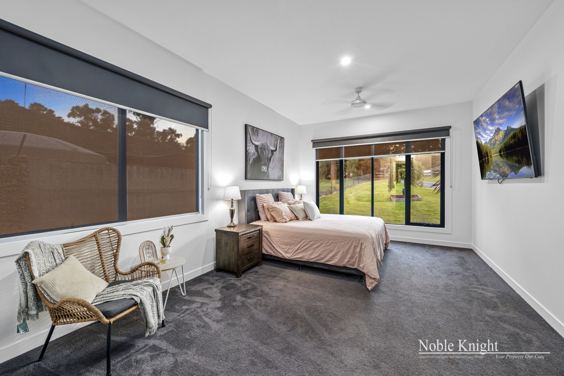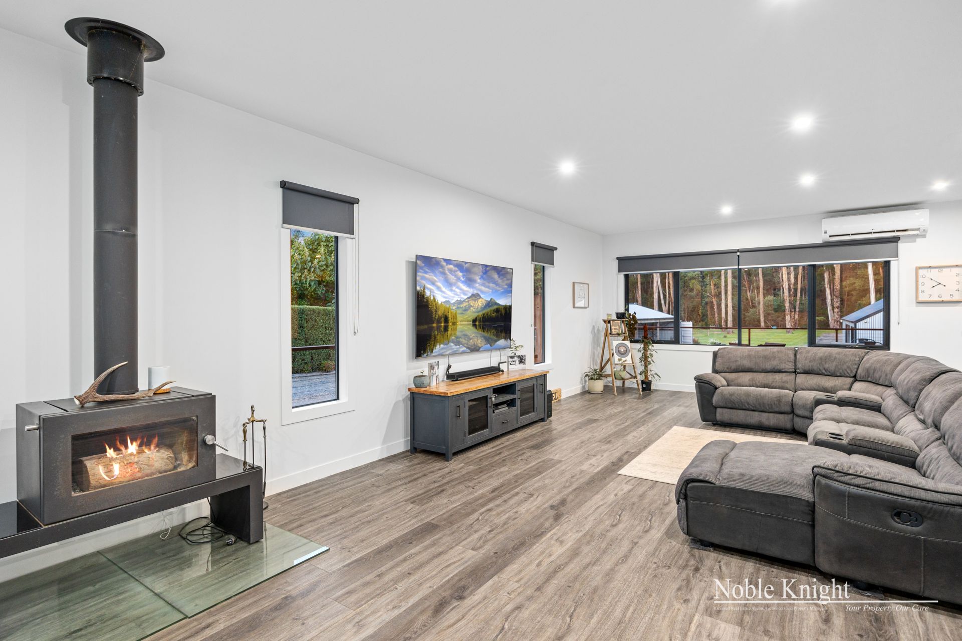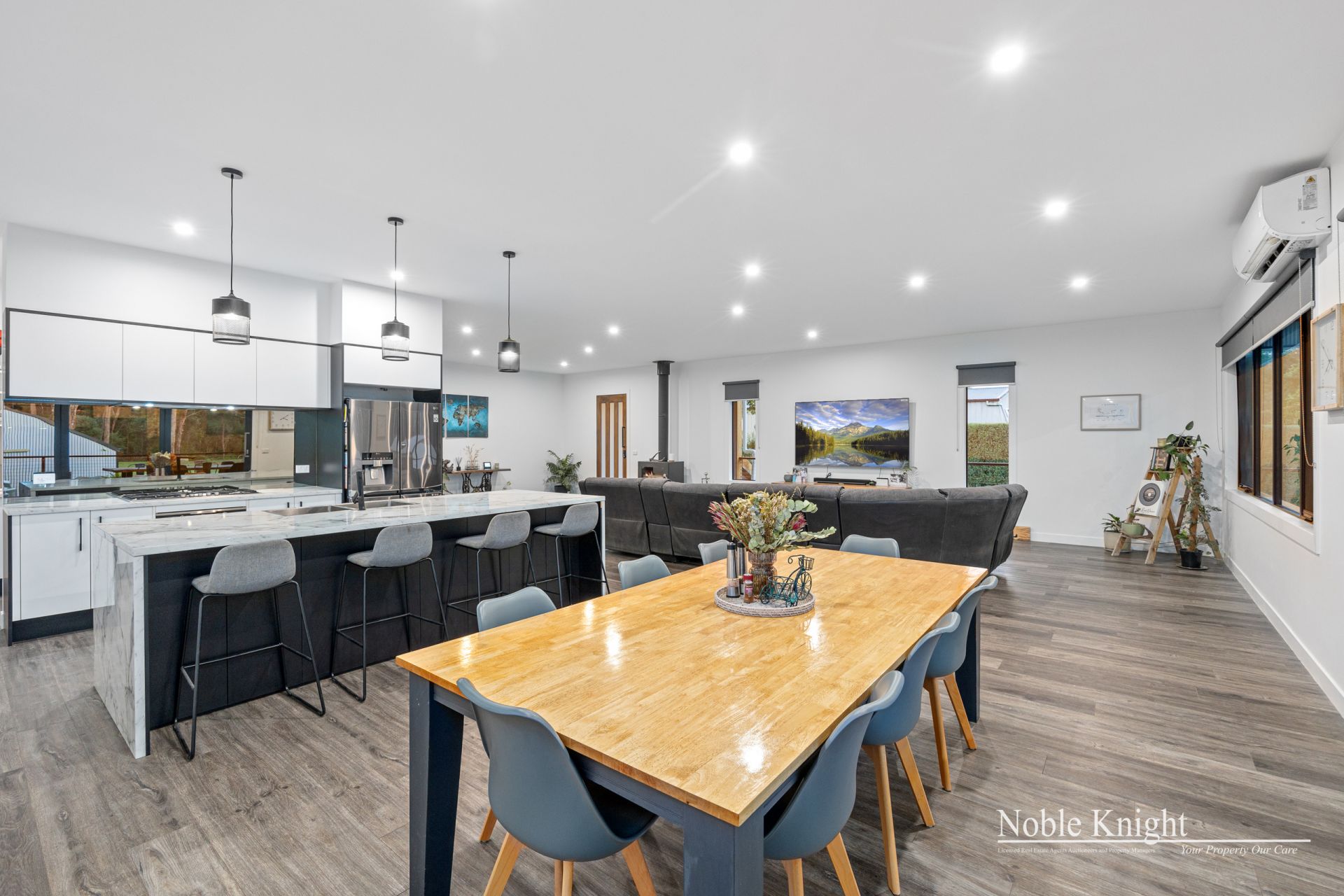 "Sambel" is a 3-year-old home boasting 4 sizable bedrooms, 3 with BIR and the master with WIR and ensuite along with shared bathroom designed to provide ample space and comfort for the entire family. Inside, you'll find floating hybrid timber floors and 10ft ceilings, creating a bright and airy ambiance throughout the home. Stay comfortable year-round with Reverse Cycle Air Conditioning (RCAC) and a charming Coonara wood fire.
