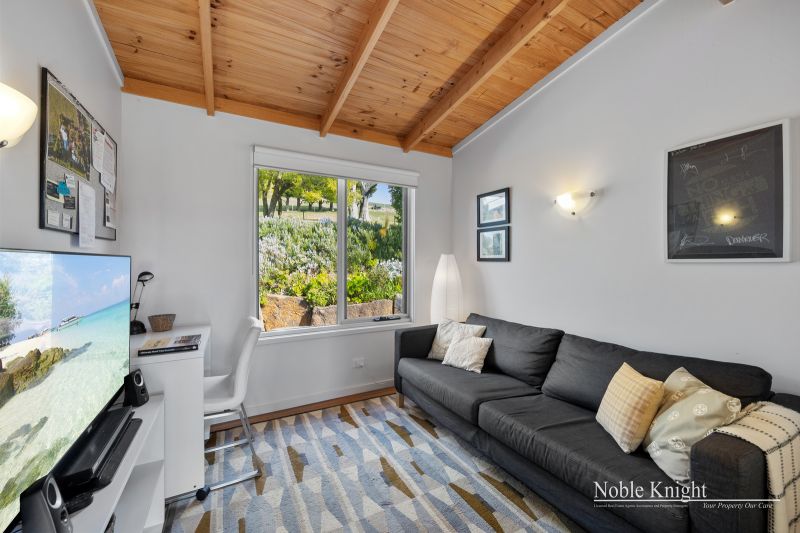 Step outside onto the deck, where uninterrupted vistas await, followed by a low-maintenance landscaped garden flourishing with a stunning array of plants and striking feature rocks.