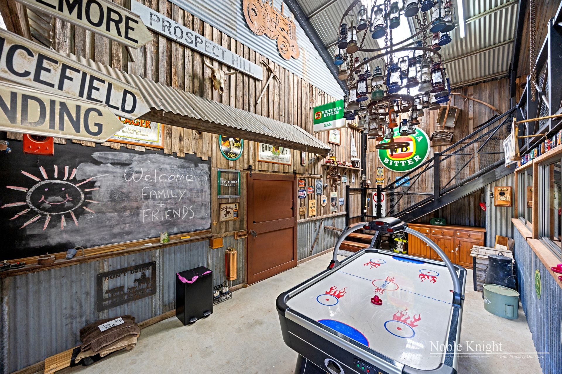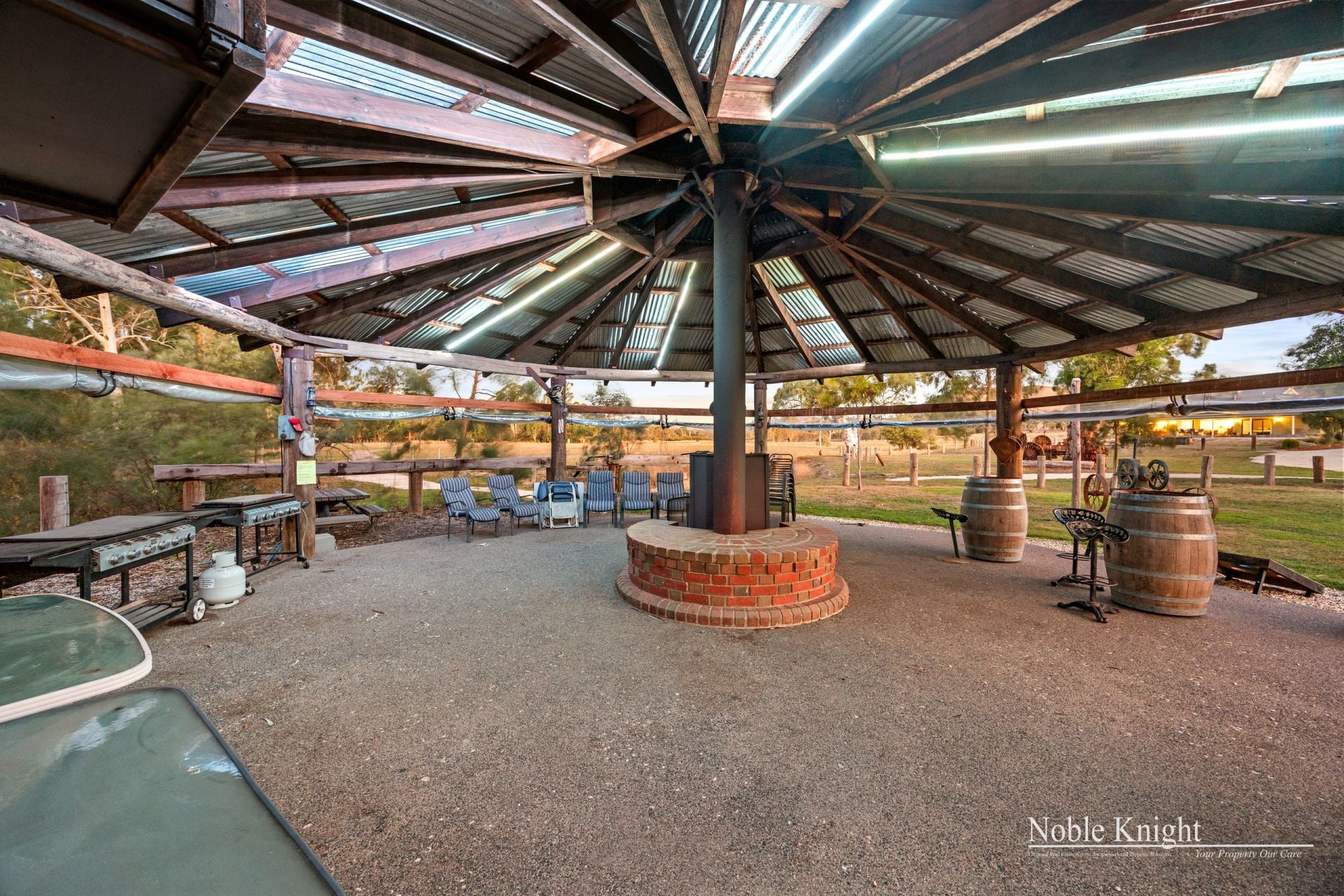 A large workshop and American-style barn provide ample space for equipment, hobbies, or additional storage, while a dedicated function venue complete with a charming rotunda and stage opens the door to functions, events, or community gatherings, all set against a breathtaking rural backdrop.