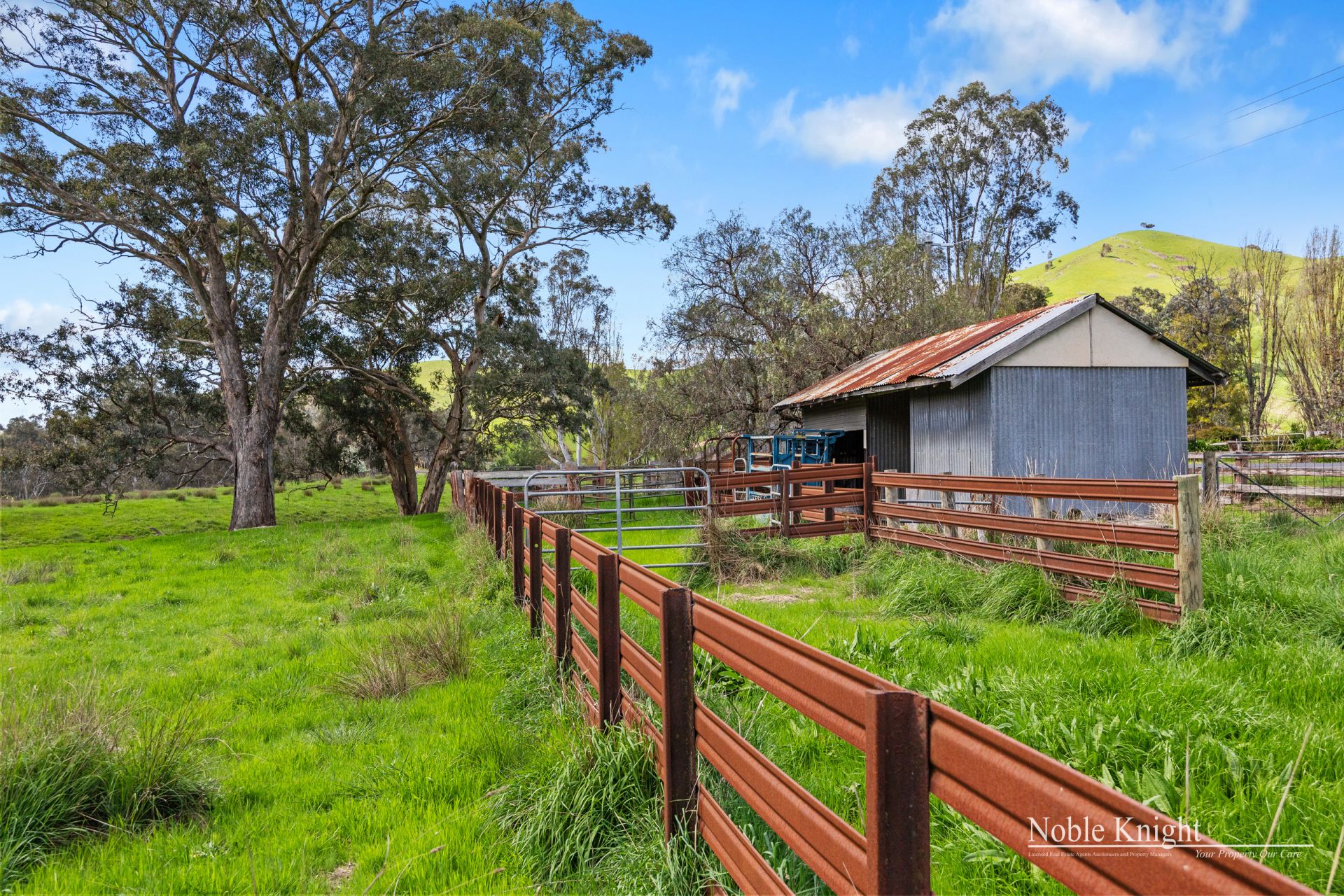 Fertile creek flats with seasonal billabongs and King Parrot Creek frontage offer priceless natural beauty with rich river gums and established trees. Includes a small shed with stockyards and crush.