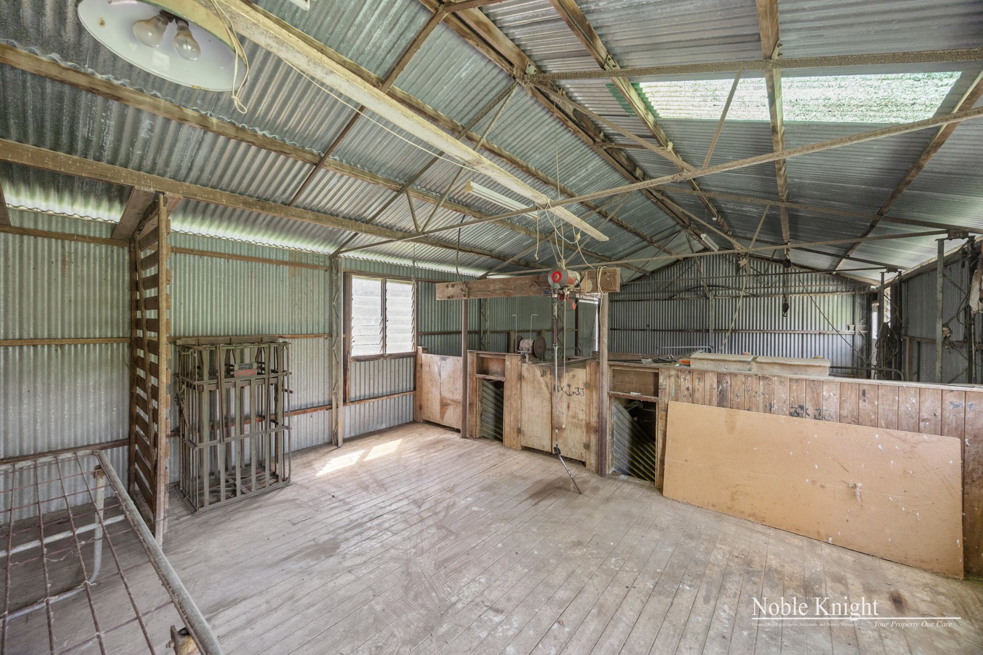 Improvements include a 2-stand wool shed, 7.5m x 12m storage/workshop shed, and a 9m x 10m American barn. The charming 3-bedroom home, complete with an office and an outside bungalow, exudes character with its original features, open fireplace, wood heater, and three reverse-cycle air conditioners.