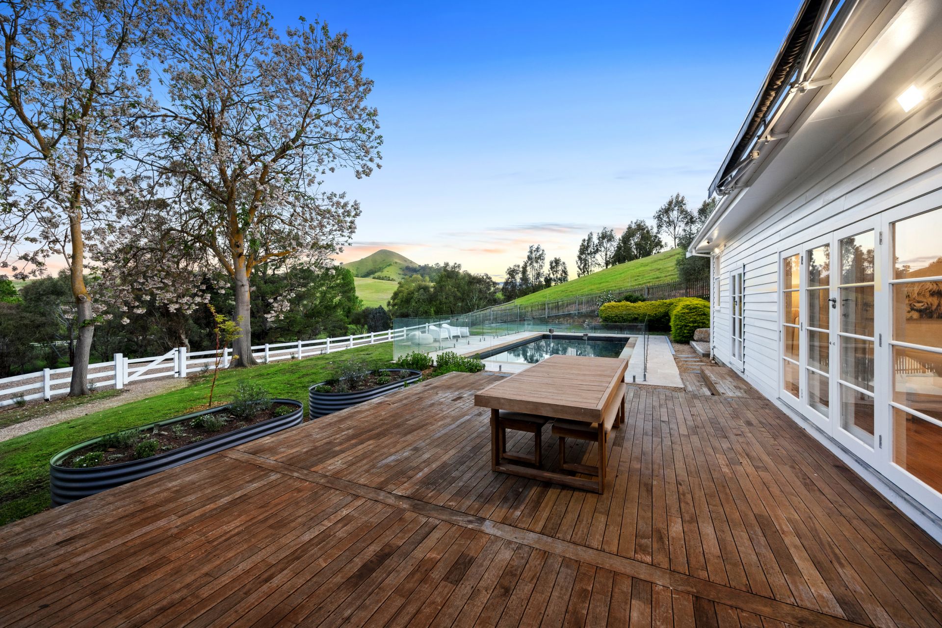 Enjoy generous open-plan living and dining, a gourmet country kitchen with premium appliances and stone countertops, and multiple outdoor entertaining areas that take in sweeping views of the surrounding landscape.