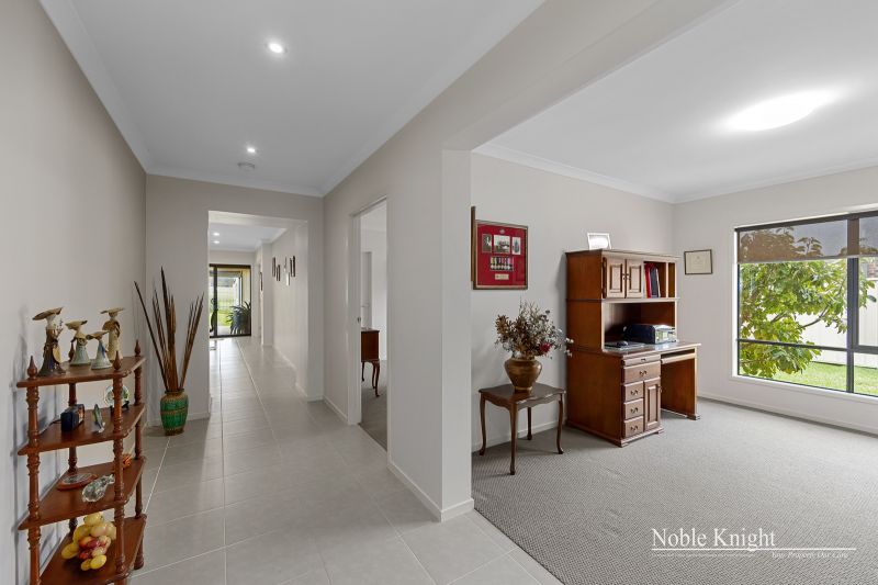 Exceptional family home backing onto the golf course and racecourse sits this 921m² block of land. The home offers four bedrooms plus study with all of the bedrooms having WIR's. Main bedroom with full ensuite. Modern kitchen with large pantry. This home is heated and cooled by three reverse cycle air conditioning units. The large flat block with side access leads to an impressive 9m x 10m shed. Solar back to the grid, veggie patch, watertank and spacious outdoor alfresco to entertain and watch the sunsets.