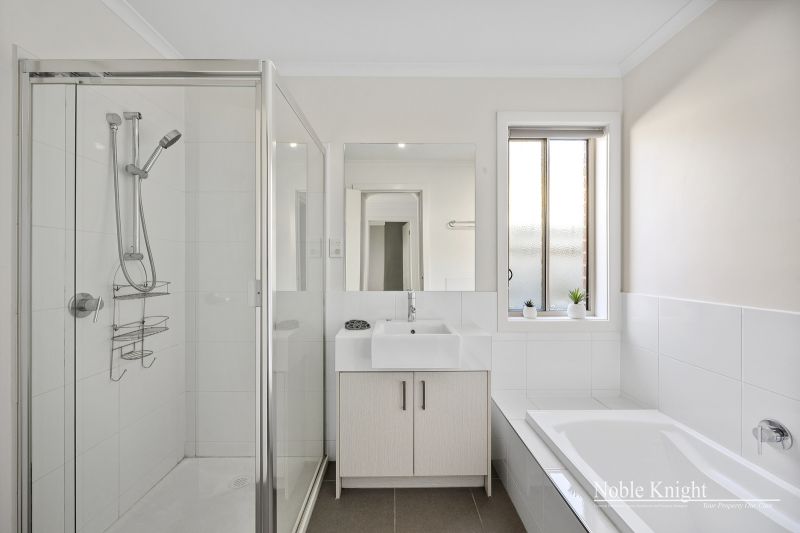 The light and inviting floorplan provides an open plan, modern kitchen with electric appliances, living/dining space, two robed bedrooms, ensuite effect central bathroom plus powder room, laundry and internal access to the single lock up remote garage and private courtyard. The home is heated and cooled by a reverse cycle split system.