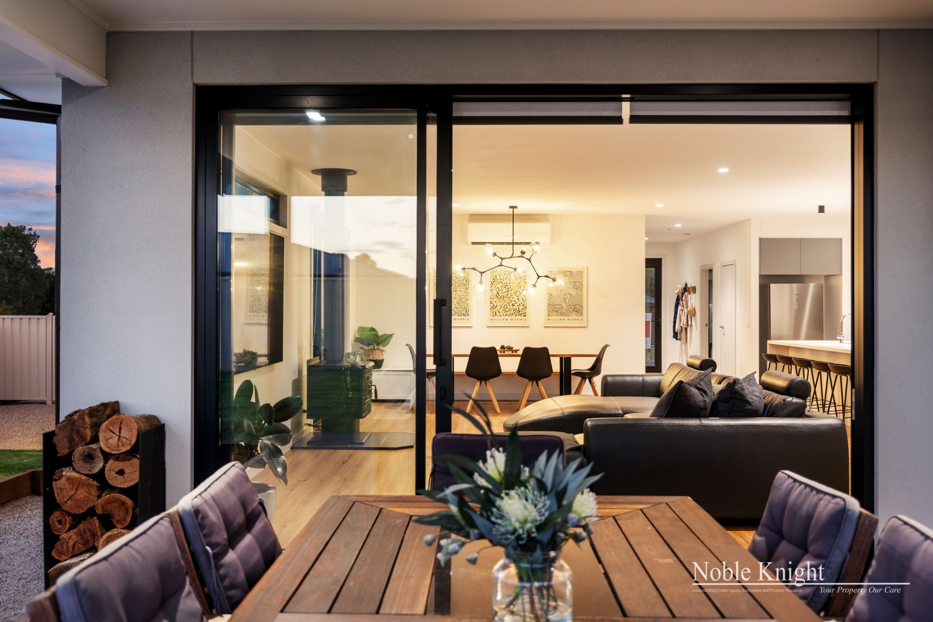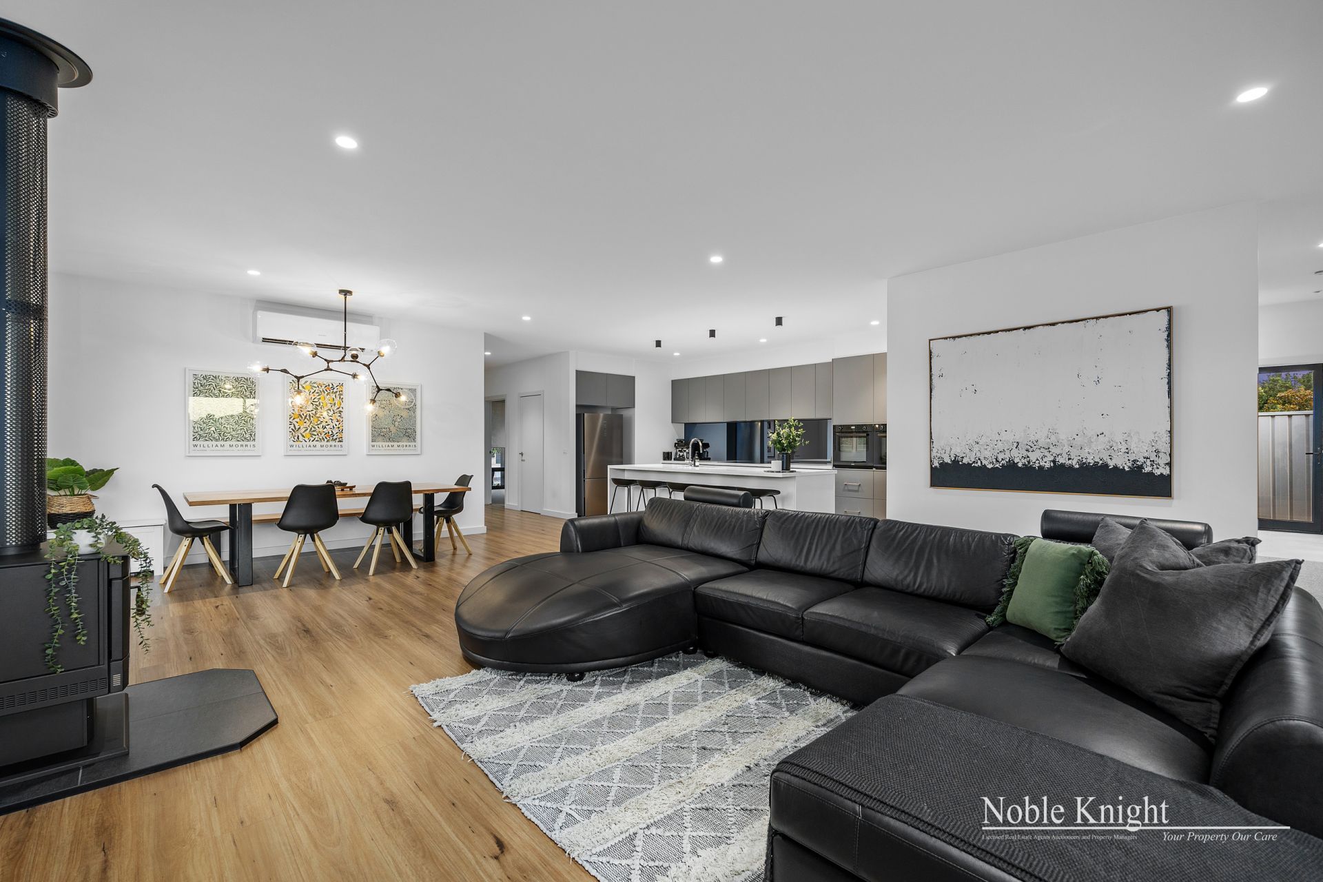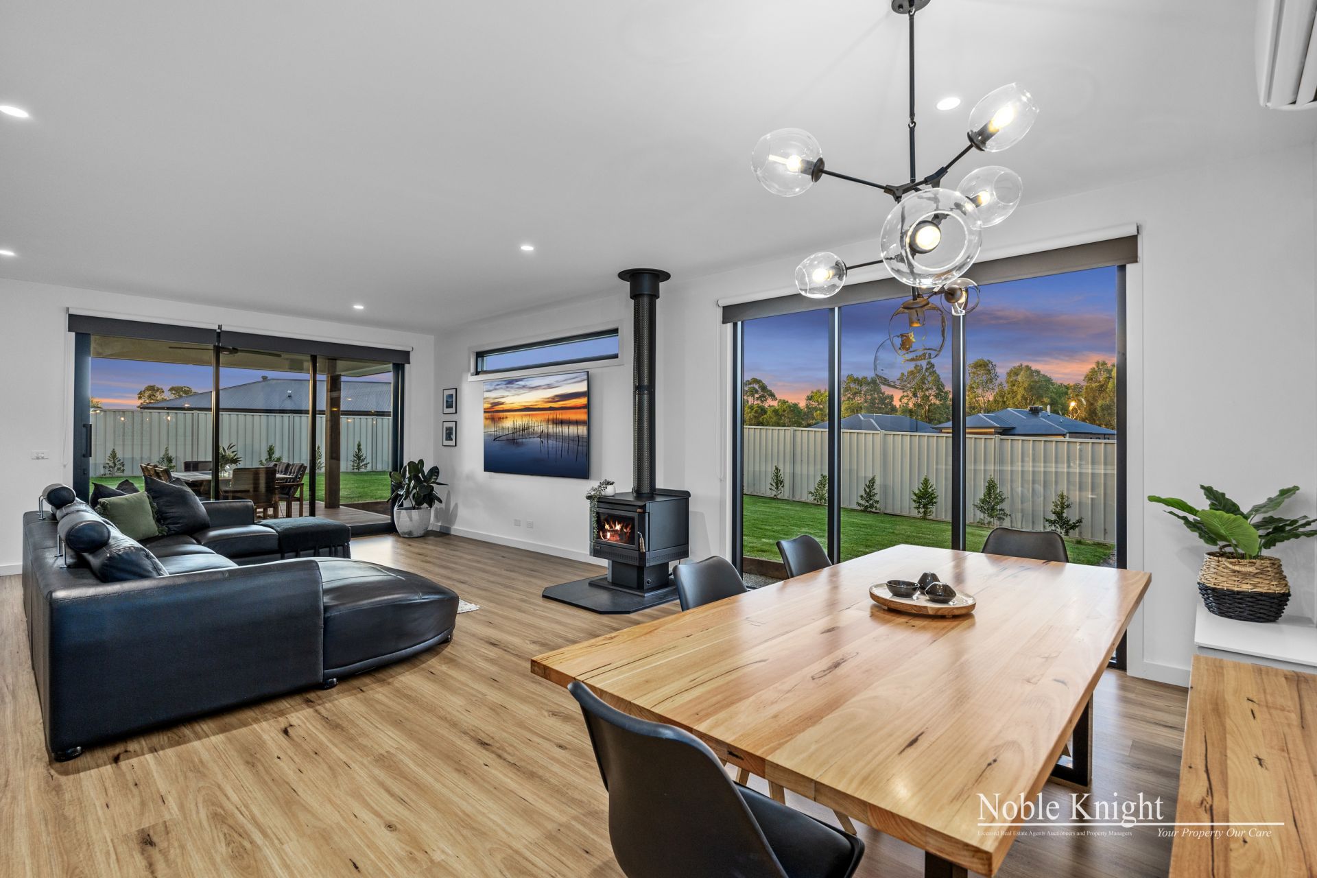 The well-appointed kitchen is complete with Caesar stone benchtops, premium Franke appliances, and quality finishes throughout. Stay comfortable year-round with three reverse cycle air conditioners and the added warmth of a cosy Coonara wood fire – perfect for chilly country nights.