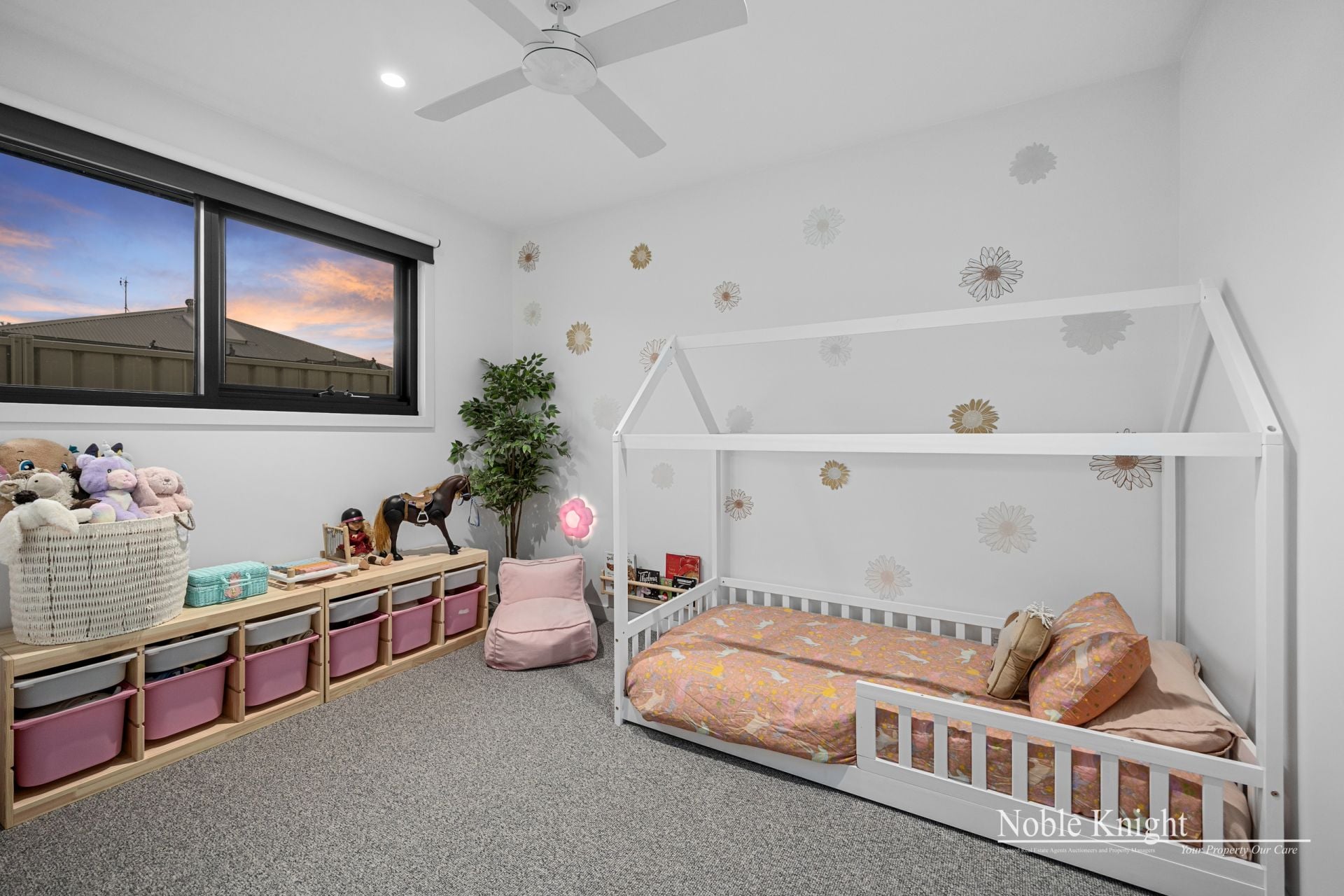 Featuring four generous robed bedrooms, including a master suite with a walk-in robe, and two stylish bathrooms, this home provides plenty of space for family living. The open-plan layout, complemented by double-glazed windows and high 9-foot ceilings, creates a light-filled and welcoming atmosphere.