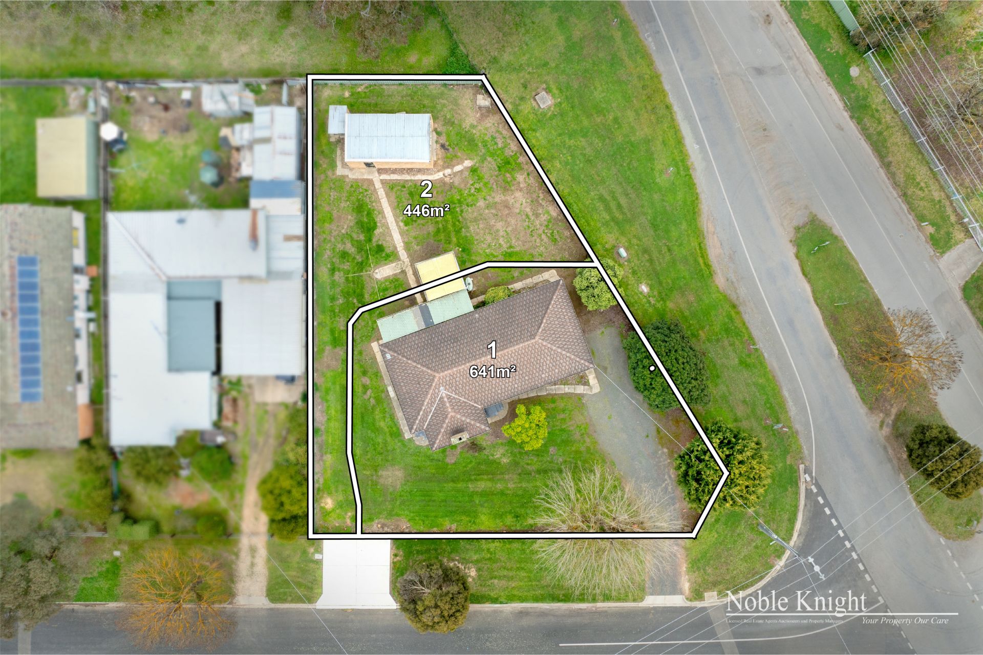 Situated on a corner block consisting of 1087 sqm approximately with a town planning permit to subdivide into 2 lots. The existing home represents 3 bedrooms with ceiling fans and built in robes to all bedrooms. The open plan living as RCAC and an open fire place, kitchen has electric cooking and meals area.