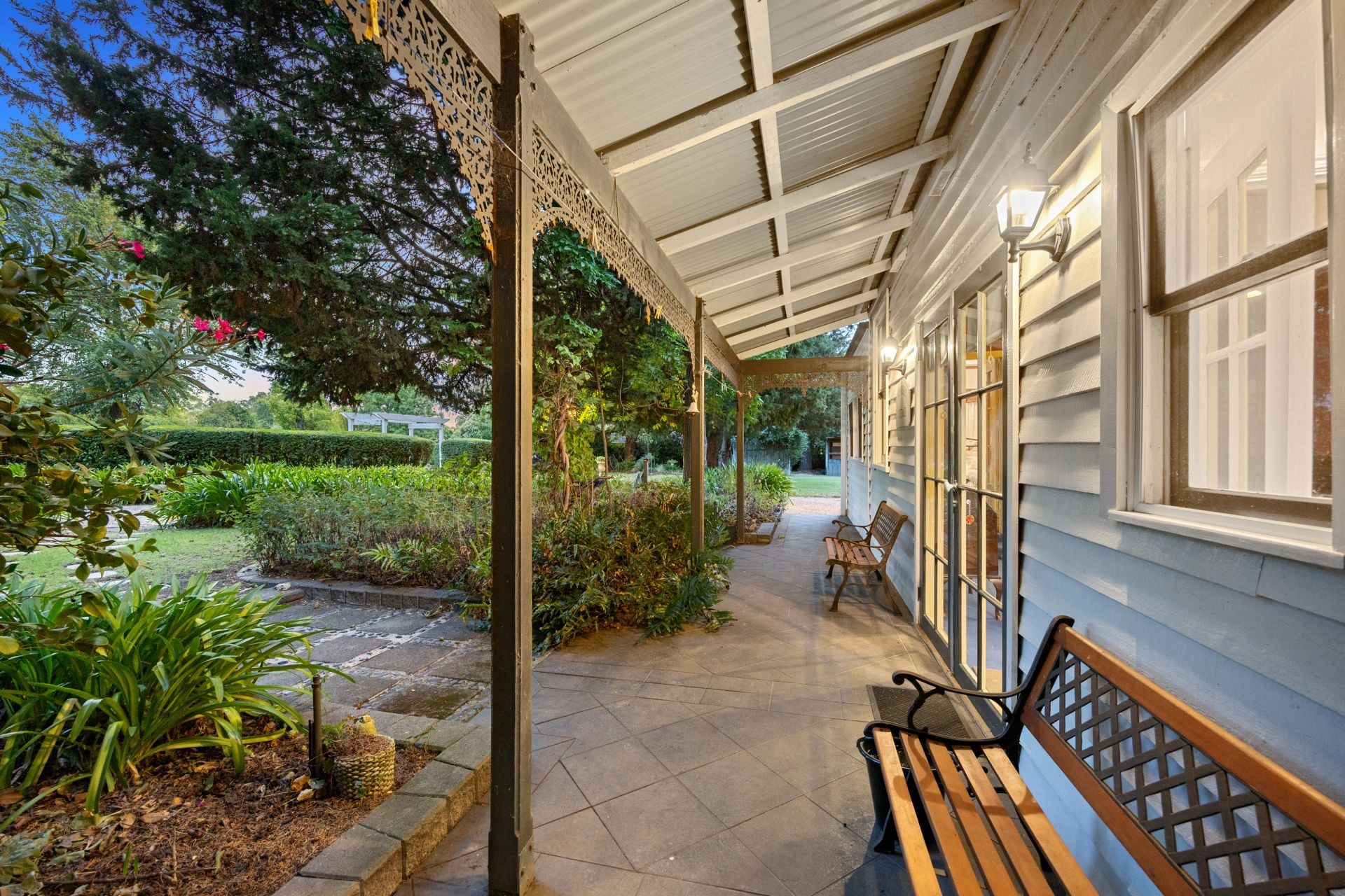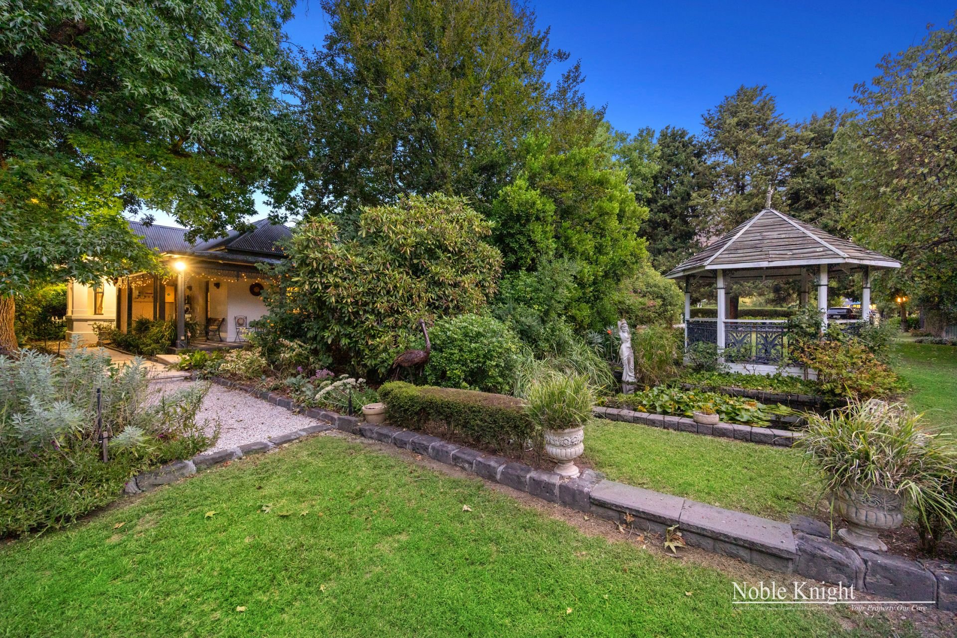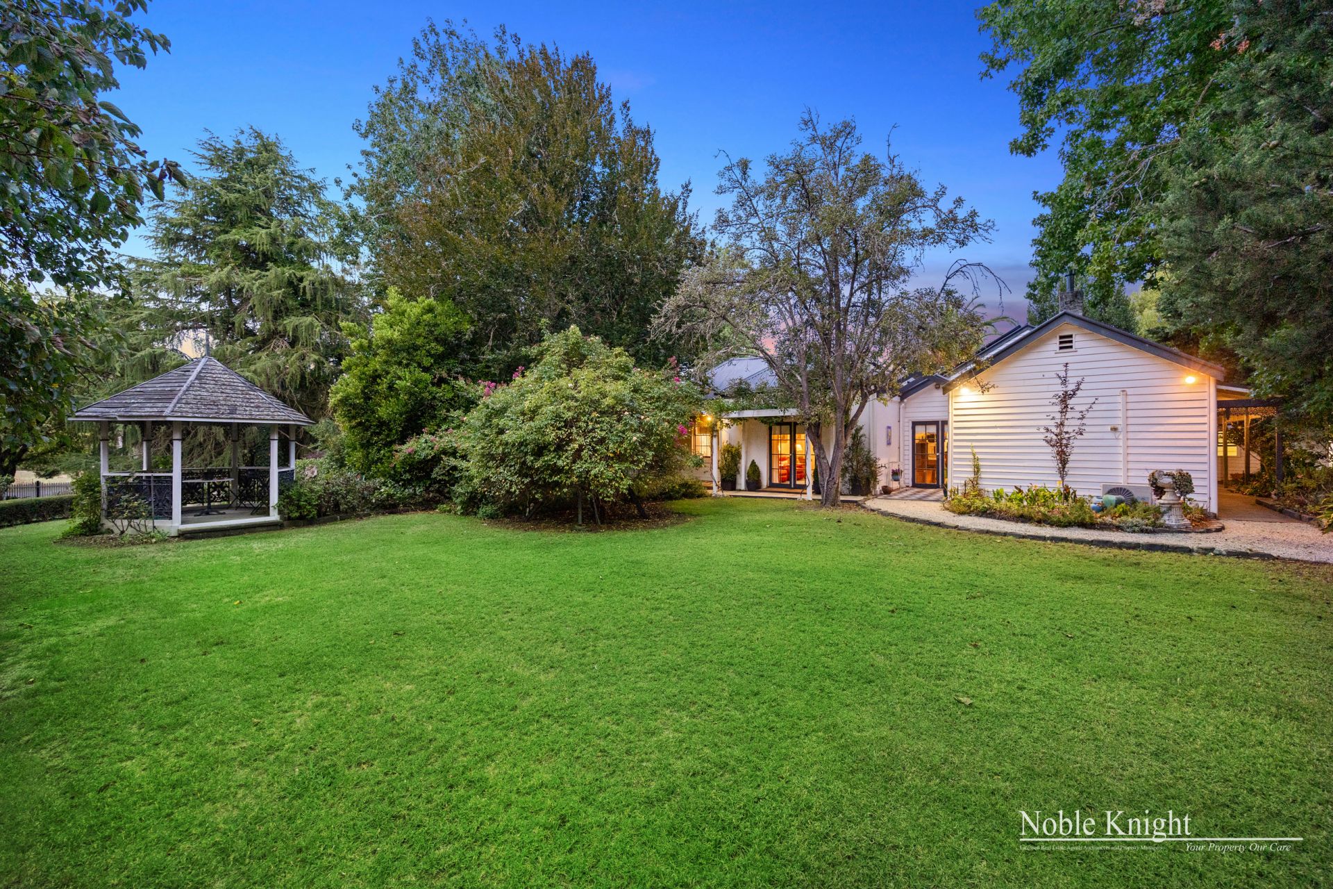 Nestled on a magnificent 1-acre (approx.) allotment in 2 titles with circular driveway & 2 road frontages, the botanical-like gardens provide a serene escape, with lush greenery, mature trees, and vibrant seasonal blooms. The expansive grounds offer privacy and tranquility while being just moments from the heart of Yea.