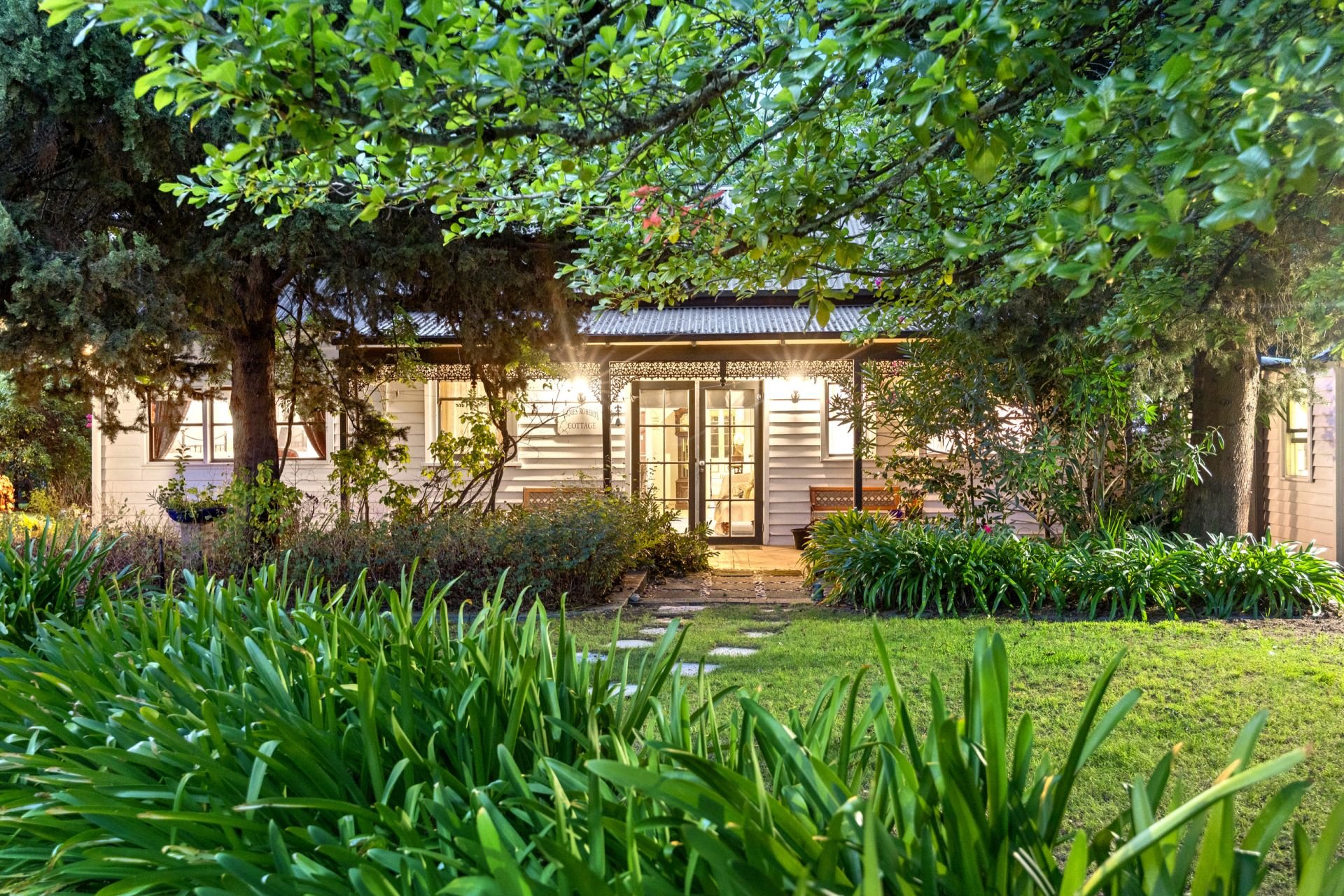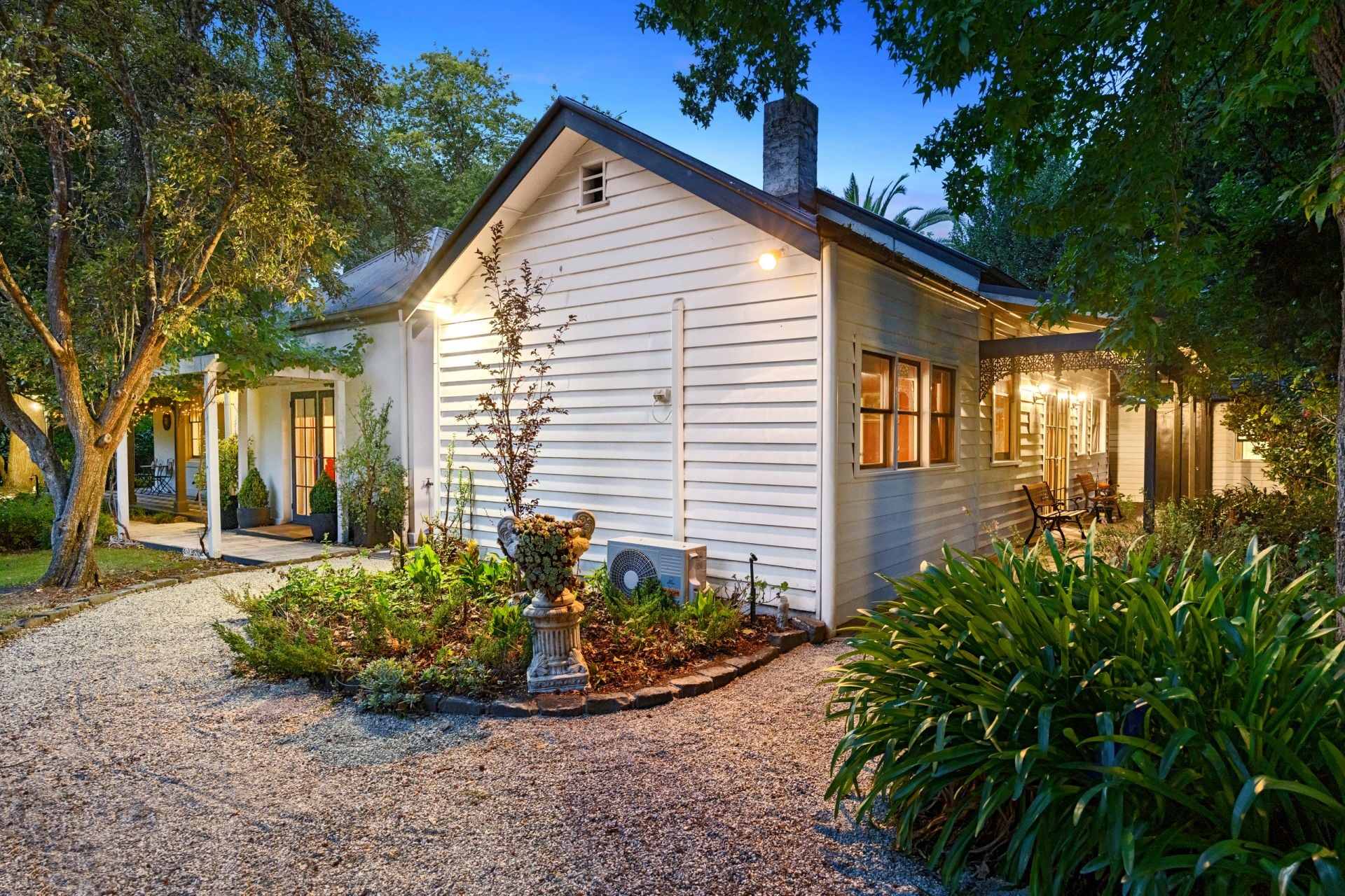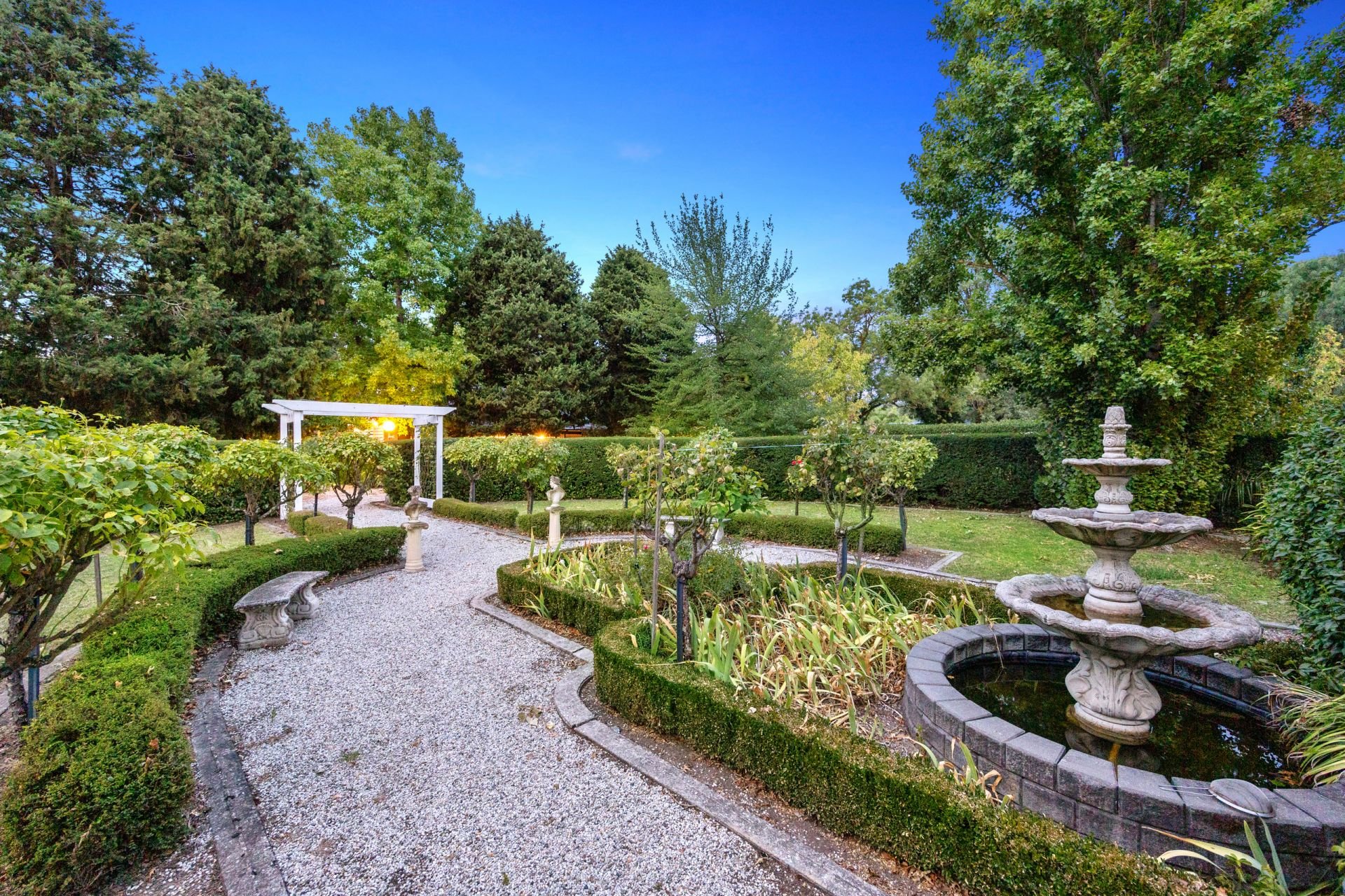 Nestled on a magnificent 1-acre (approx.) allotment in 2 titles with circular driveway & 2 road frontages, the botanical-like gardens provide a serene escape, with lush greenery, mature trees, and vibrant seasonal blooms. The expansive grounds offer privacy and tranquility while being just moments from the heart of Yea.