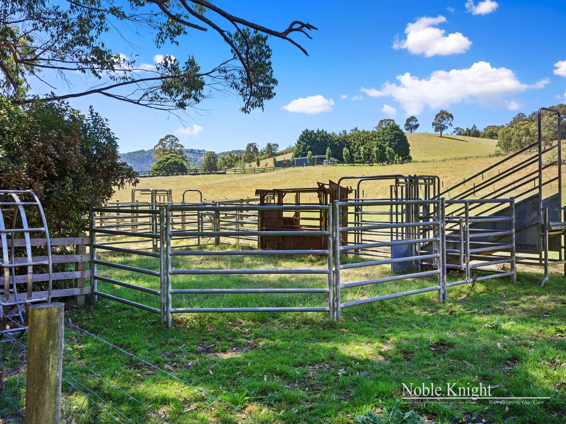 The land comprises seven well fenced paddocks, seven dams, hay shed, machinery shed, wood shed, and garden sheds. The well-maintained and regularly fertilized pasture is ideal for cattle grazing and is complimented by two sets of steels yards complete with crush.
