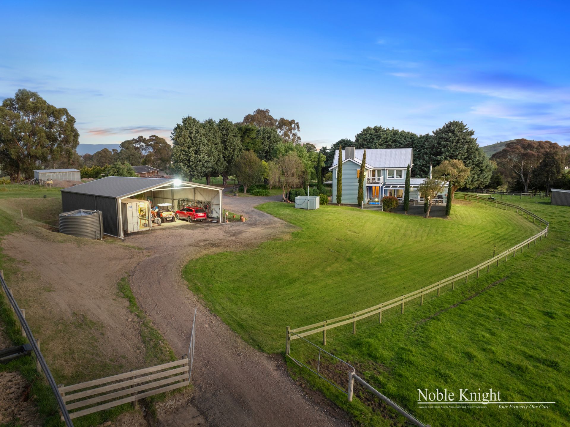 The property is well-equipped for livestock or equine pursuits, with round yard, 2 dams, 7 paddocks, and ample water supply.