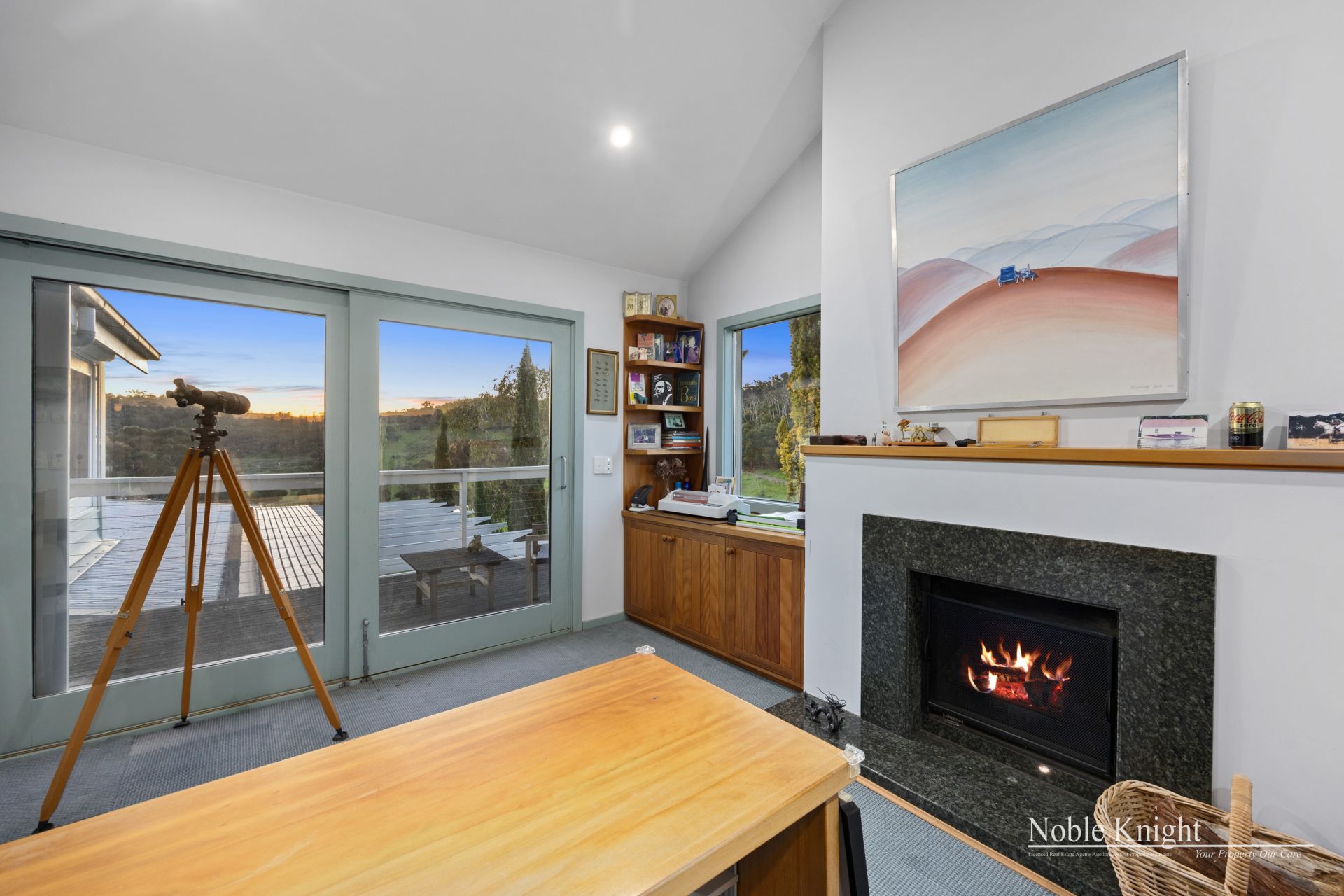 This home offers year-round comfort with gas ducted heating, evaporative cooling, and open fireplaces in both the living areas and the study.