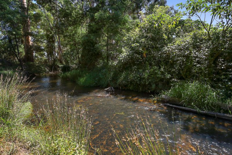 From the French doors you will be lead outside to the large under cover alfresco area, with a kitchenette & ample space for all of your entertaining needs. Whilst sitting there, you can take in the established landscaped gardens & listen to the Watts River flowing in the background. Not only does Watts River curve around 3 sides of the property boundaries, it also offers 2 megalitre pumping rights, a resident platypus, as well as swimming & fishing opportunities.