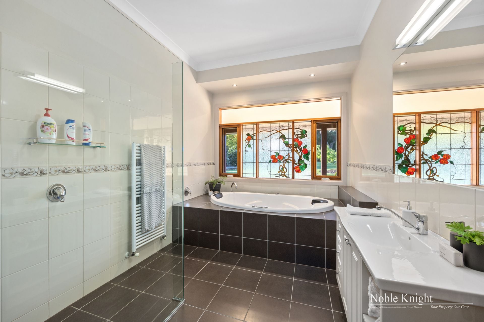 Introducing this exceptional, first-time-on-market four-bedroom family residence - a true masterpiece of quality and spacious living. Upon arrival, you are welcomed by a meticulously maintained stone driveway, lush mature gardens, and an expansive front lawn, setting the tone for the elegance that lies ahead. Beyond the home, a private retreat of beautifully kept gardens awaits, complete with flourishing fruit trees and manicured lawns.