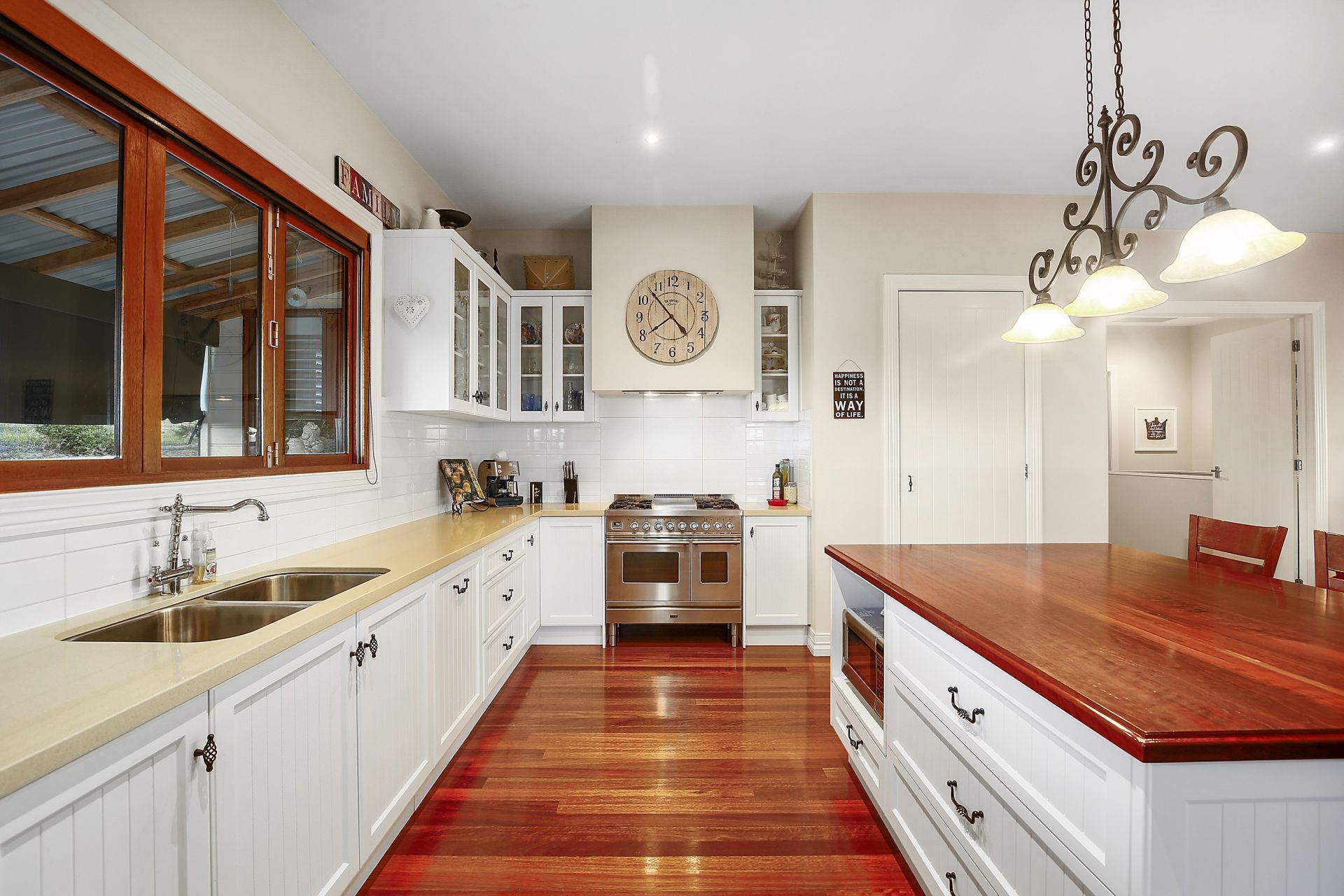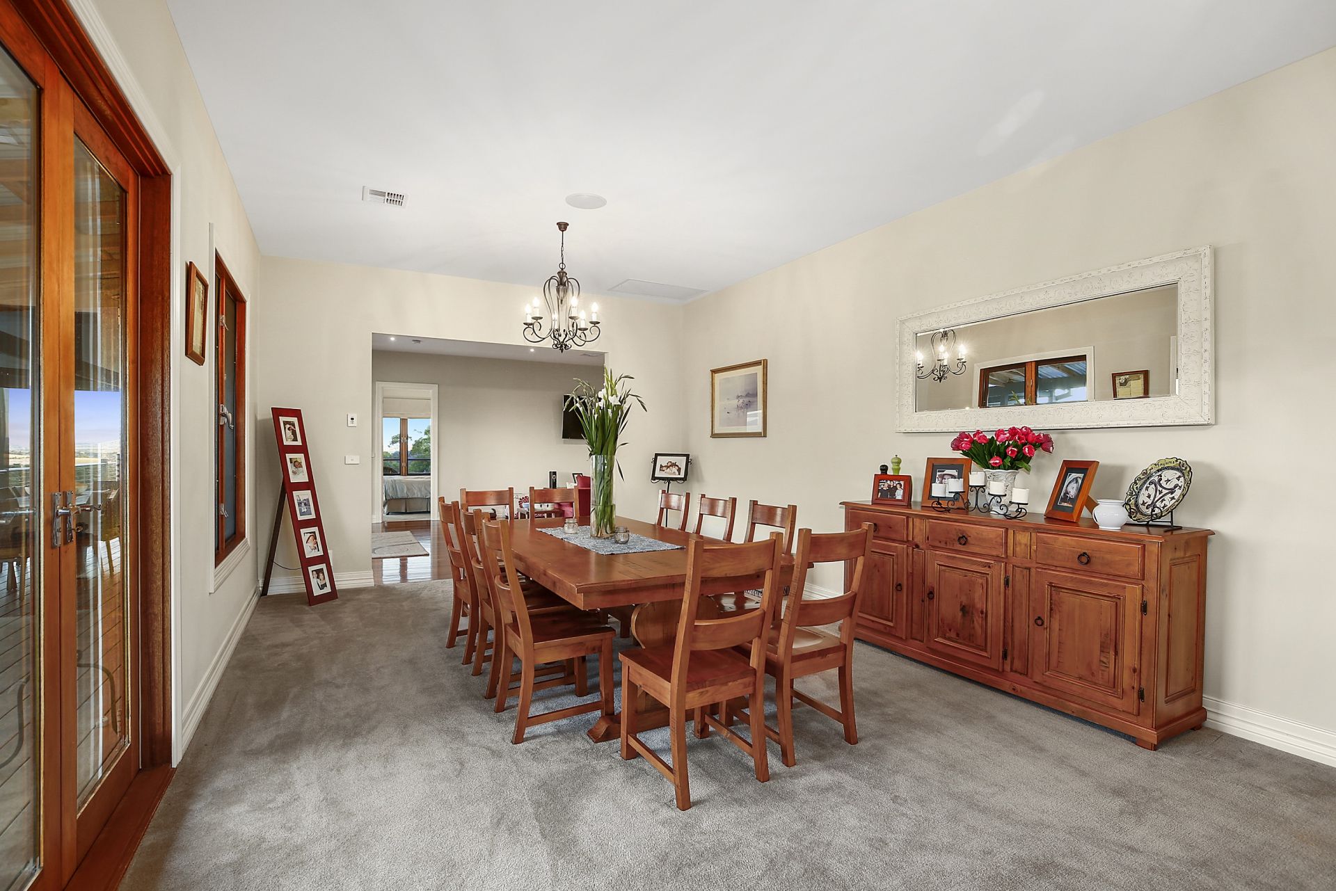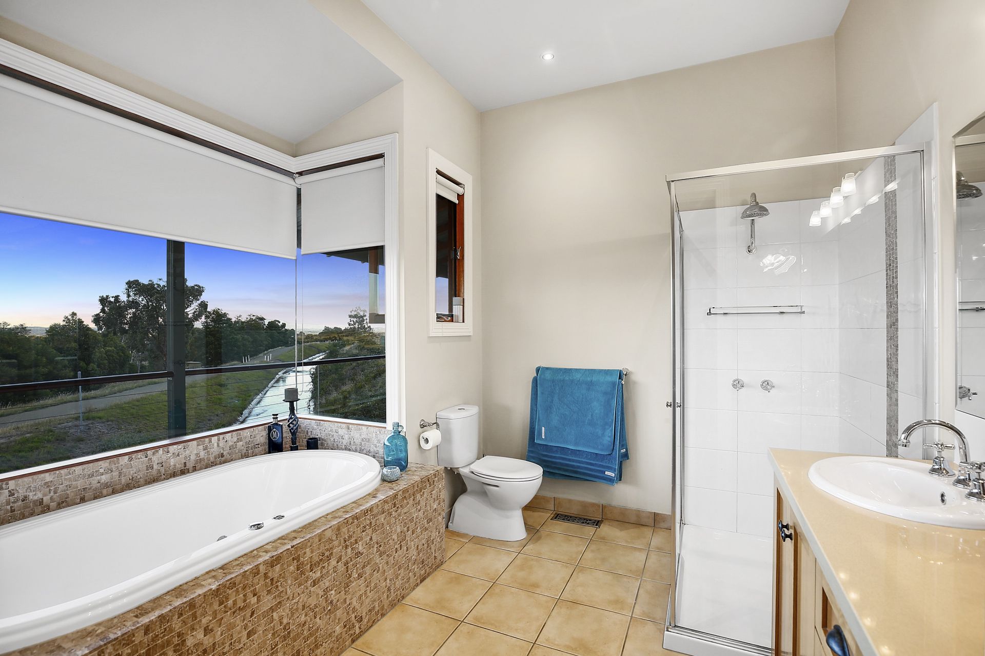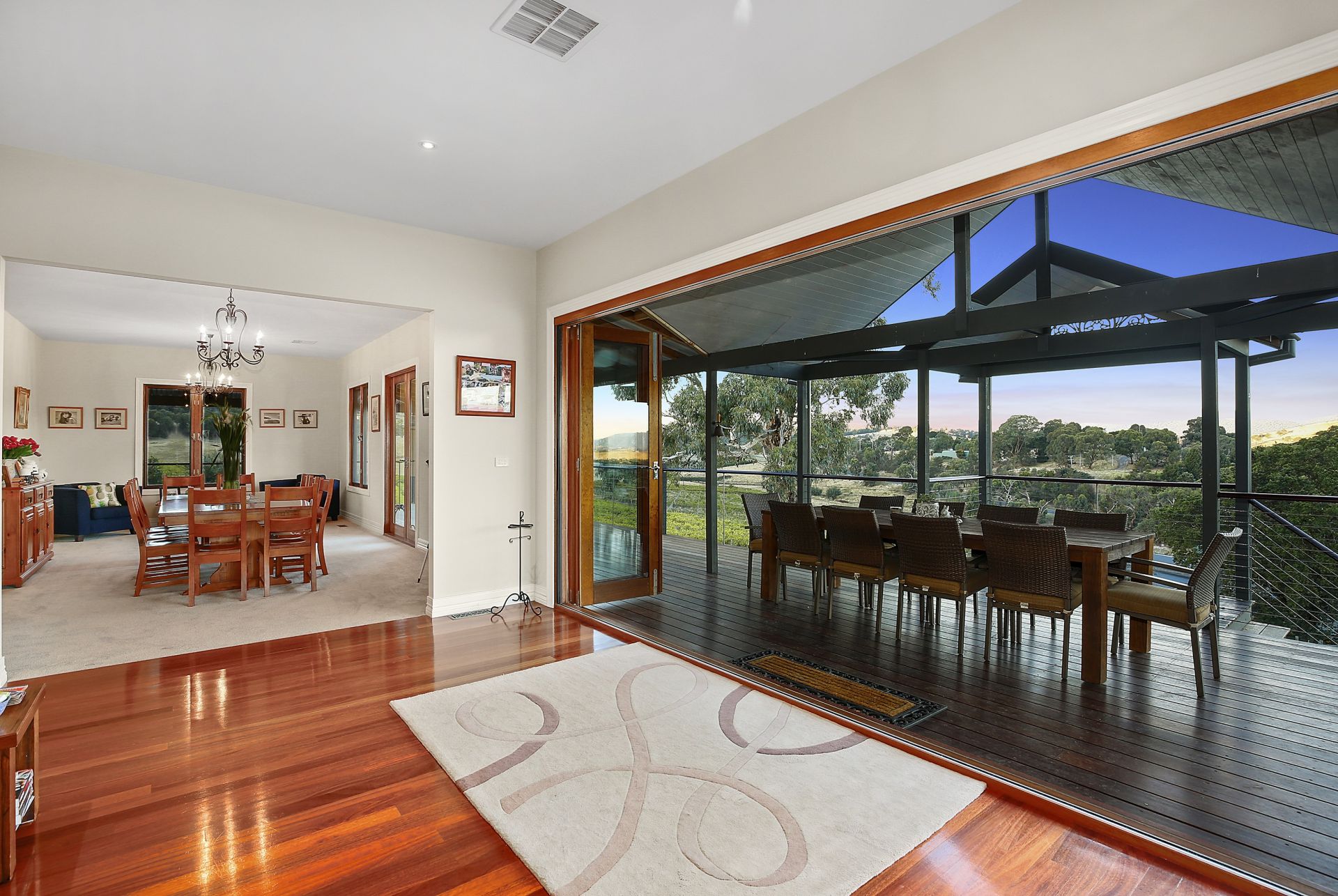 Leading from the sealed driveway, oozing with elegance and class proudly stands this flawlessly presented Queenslander inspired home offering a luxurious lifestyle. With ample space for indoor and outdoor entertainment, from having a quite champagne on the wrap around balcony to swimming in the glistening in-ground pool. From walking through the house the emphasis on space is immediately evident in the large family lounge and formal dining room, both with picturesque views. The Kitchen boasts stone bench tops, tiled splash backs, red gum island bench and a freestanding stainless steel gas oven. The large laundry is conveniently situated with outdoor access. The master bedroom offers total luxury with a spacious walk in robe and ensuite with a spa bathtub meticulously placed to capture the views of the valley. Additionally, the home has three sizeable bedrooms, all with built in robes, ceilings fans and two sharing an ensuite with a double vanity. Placed is a four car garage and workshop, bottom level offers a fifth bedroom with a walk-in robe + a sound proof home office and bathroom. Additional features of the property include, double glazed windows, Rosewood polished floorboards, plantation shutters, a sound system throughout the house, ducted vacuuming, gas ducted heating, refrigerated cooling. Connected to mains water and natural gas, 25,000 litre water tank and a large 9m x 12m Shed (Man Cave) with concrete floor and power. The land is fully fenced with three paddocks, easily manageable and located only a short drive to the township of Yarra Glen, if you are wanting a taste of luxury and elegance with a sense of country living.