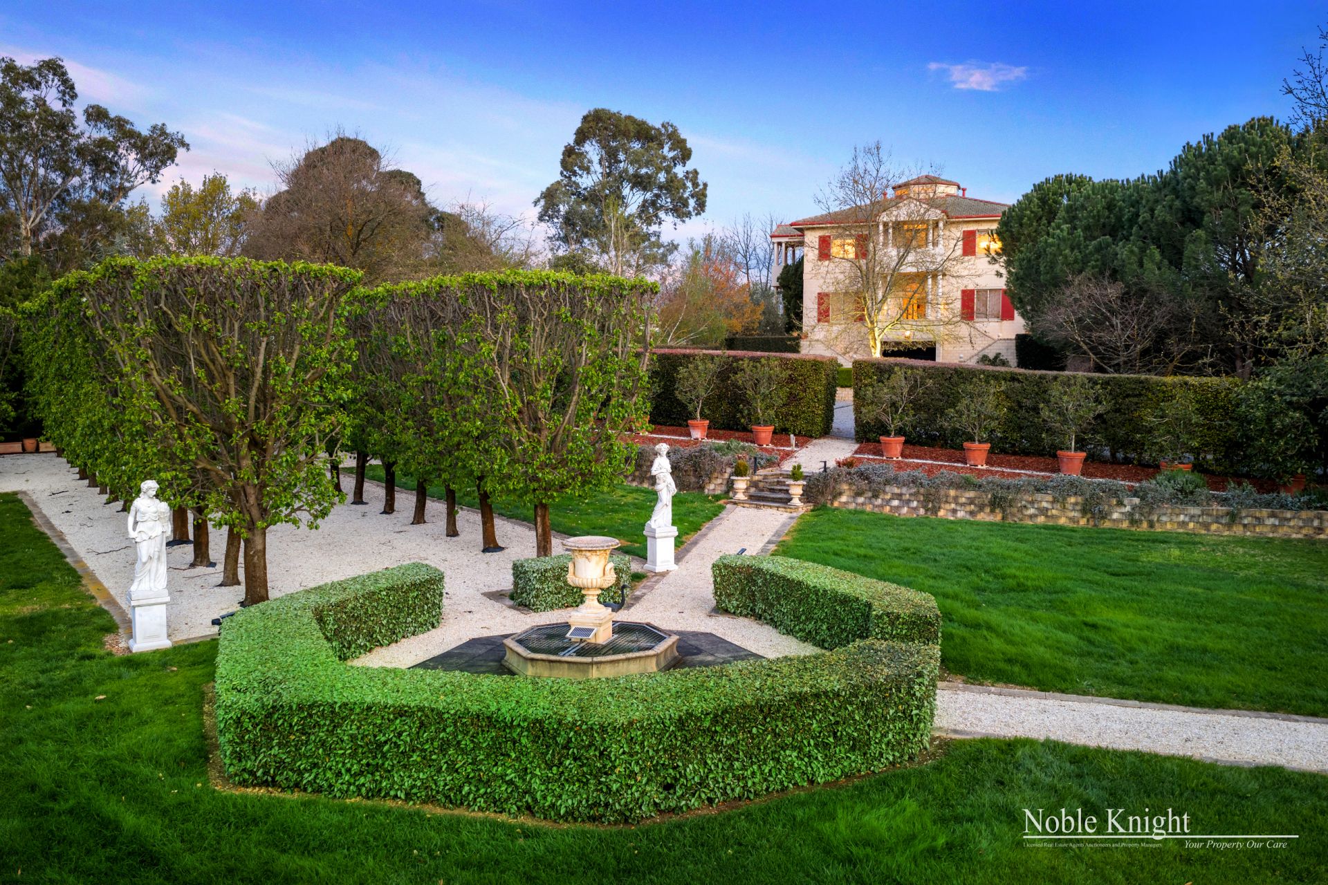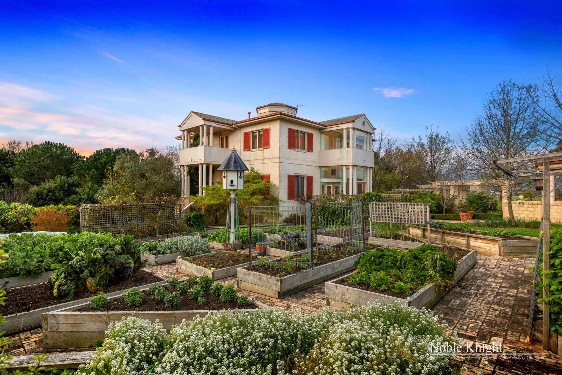 The two guest accommodations each have their own courtyard, luxury bathrooms, kitchens with high end fixtures and fittings including stone benchtops and separate under cover parking. Both the one-bedroom residence patios have vistas of the most stunning water feature and treelined colonnade. Elsewhere the gardens feature mature trees and flowering shrubs, extensive lawns, a secluded Japanese garden, and an expansive pergola-colonnade leading to a gazebo with fabulous pizza oven. Seasonal fruit and vegetables are available year-round from the orchard and superb raised vegetable gardens. There is also a Tuscan style outbuilding with 3 large 2.6 x 6 metre spaces, each with double doors, perfect for mechanical storage, potting shed, or even artistic workspace.